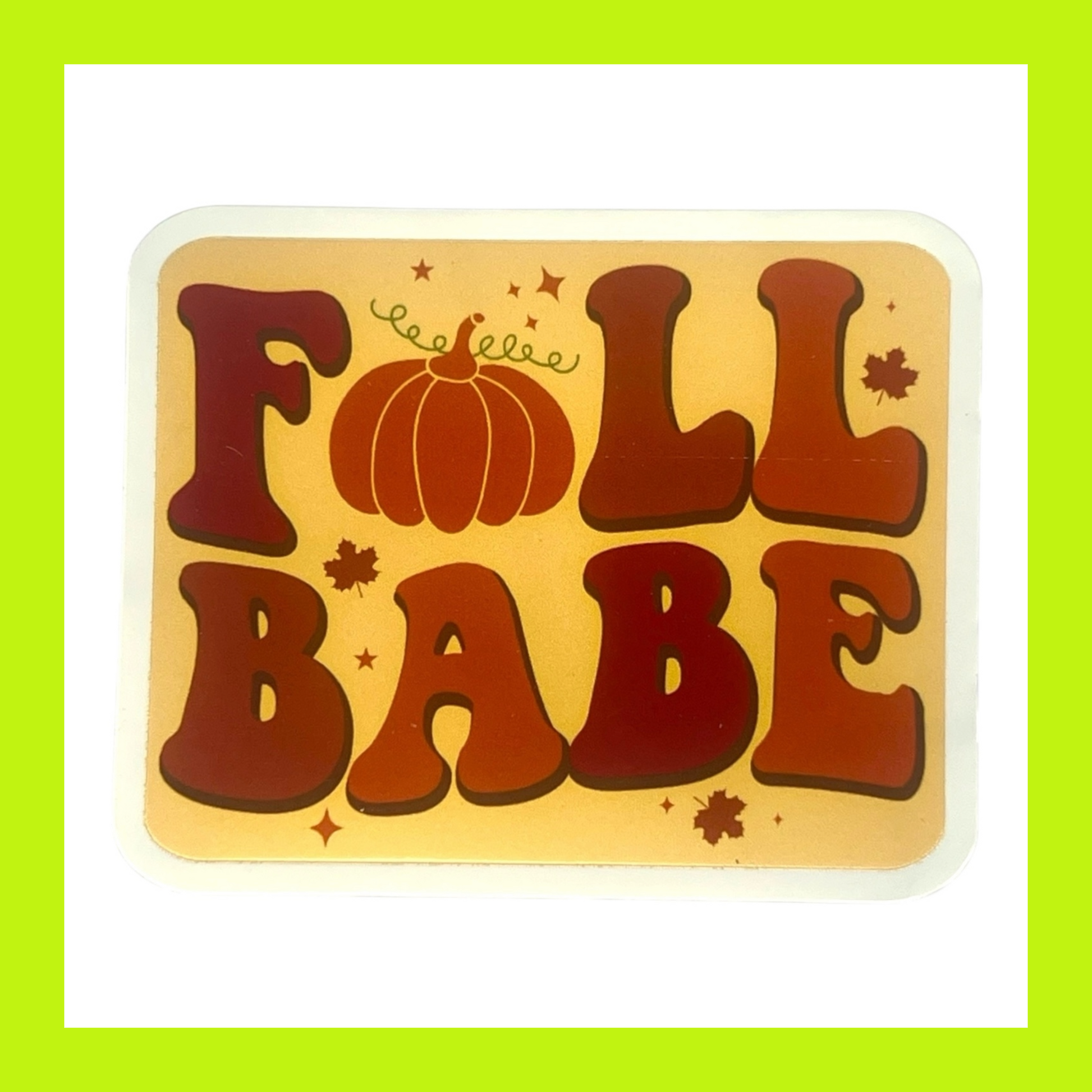 Celebrate autumn vibes with the Easy Peel FALL BABE Glossy Sticker! This adorable, glossy sticker adds a fun and festive touch to your notebooks, laptops, or planners. Easy to peel and stick, it’s perfect for showing off your fall spirit with a playful flair.